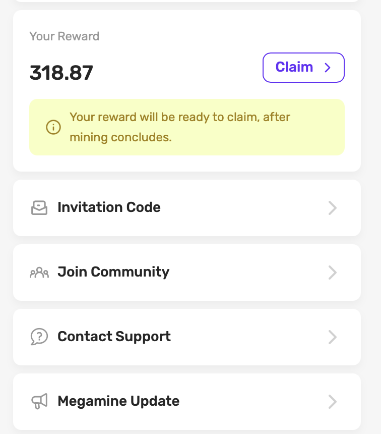 마지막으로 MegaMine에서 보상받은 채굴 코인을 어떻게 보상을 받는지가 궁금하실텐데요. 그건 아직 준비중이라서 오픈할때까지 계속 채굴을 하시면 됩니다.