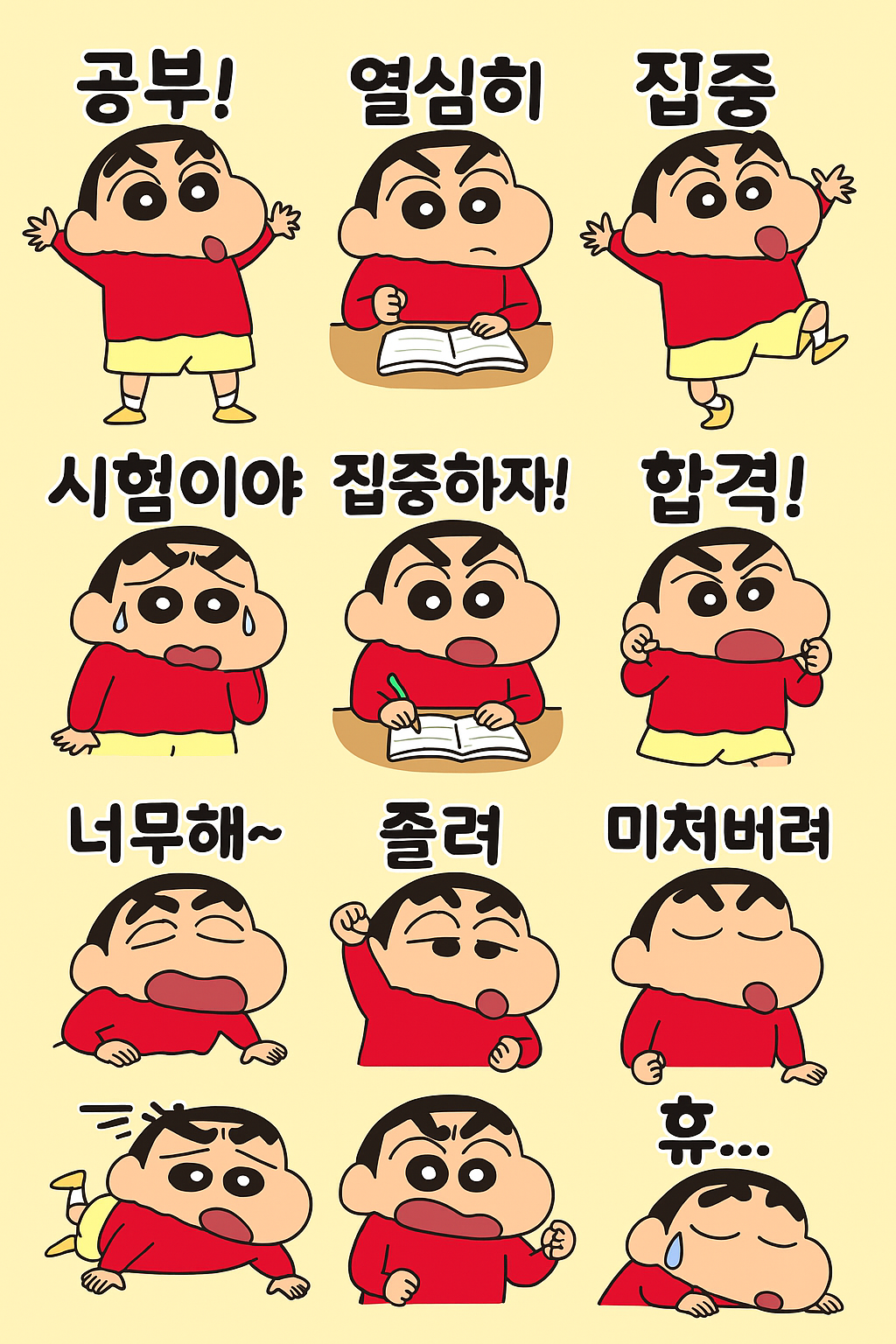 ▶️ (각 인물의 사진을 넣고) 이 사진을 활용해서 카카오톡용 이모티콘 12종류를 만들어줘. [XXX] 관련 대사도 넣어서 만들어줘