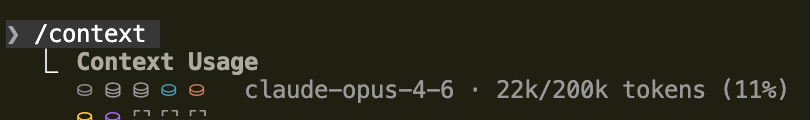 그리고 /context를 입력시 200k tokens 가 기본적으로 나올거에요. 아직 백만 토큰 적용전