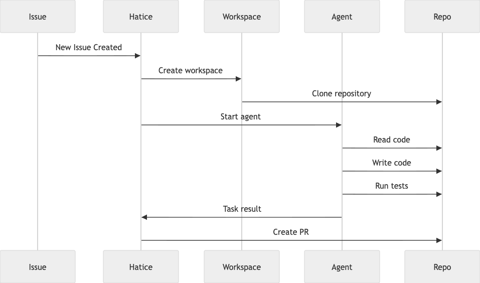 Hatice는 GitHub Issues 또는 Linear를 작업 트리거로 사용합니다.
