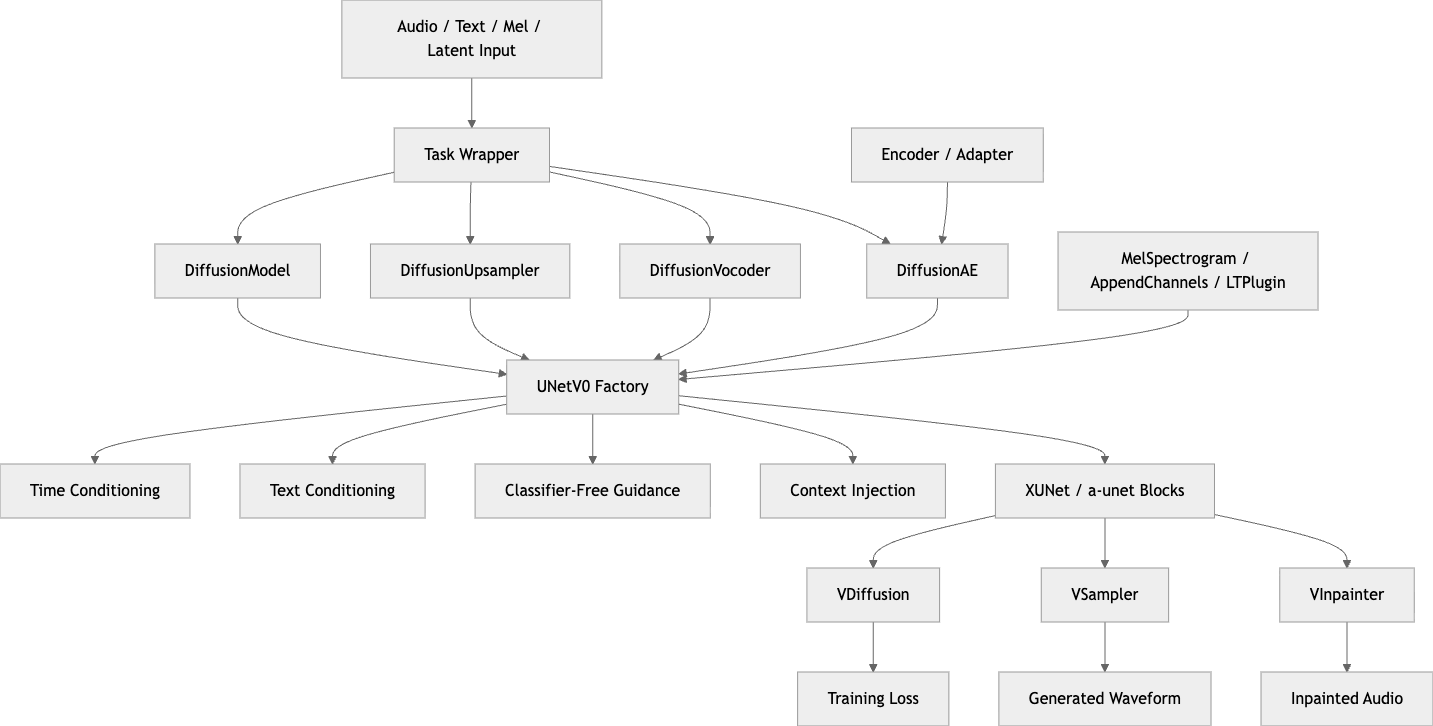 네트워크 구조를 바꾸고 싶으면 UNetV0 쪽을 건드리면 되고, 샘플링 전략을 바꾸고 싶으면 diffusion/sampler를 바꾸면 되며, 태스크를 추가하고 싶으면 wrapper를 하나 더 만들면 됩니다. 즉, 실험 축이 잘 분리되어 있습니다. (GitHub)