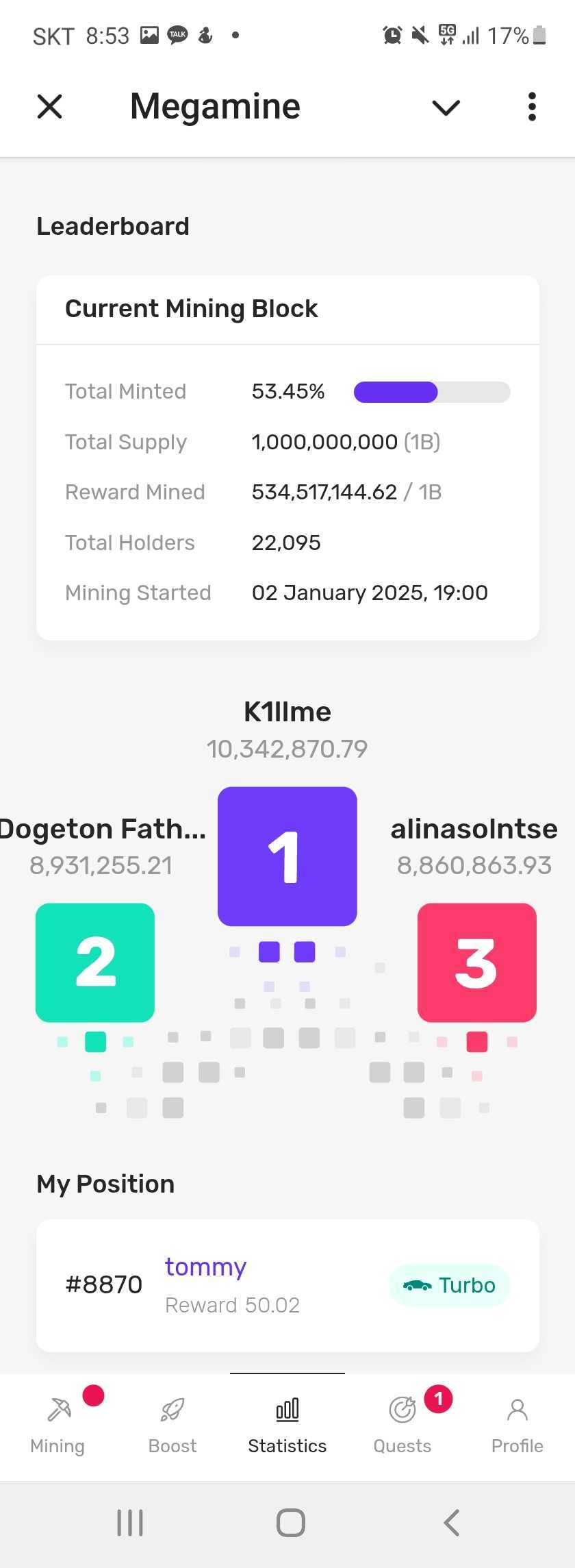 그리고 MegaMine은 게임처럼 리더보드가 있어서 현재 순위를 확인이 가능합니다. 추후에 에어드랍이나 이벤트 보상이 있을수 있으니 열심히 참여를 해놓으시면 좋습니다.