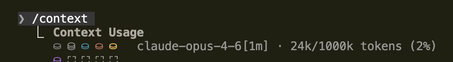 그리고 /context를 입력시 200k tokens 가 기본적으로 나올거에요. 아직 백만 토큰 적용전